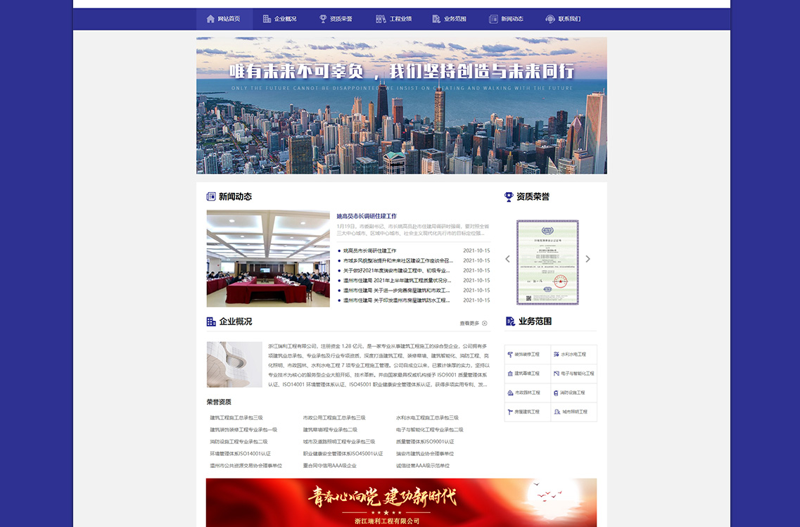浙江瑞利工程有限公司,注册资金 1.28 亿元,是一家专业从事建筑工程施工的综合型企业,公司拥有多项建筑业总承包、专业承包及行业专项资质,深度打造建筑工程、装修幕墙、建筑智能化、消防工程、亮化照明、市政园林、水利水电工程 7 项专业工程施工管理。